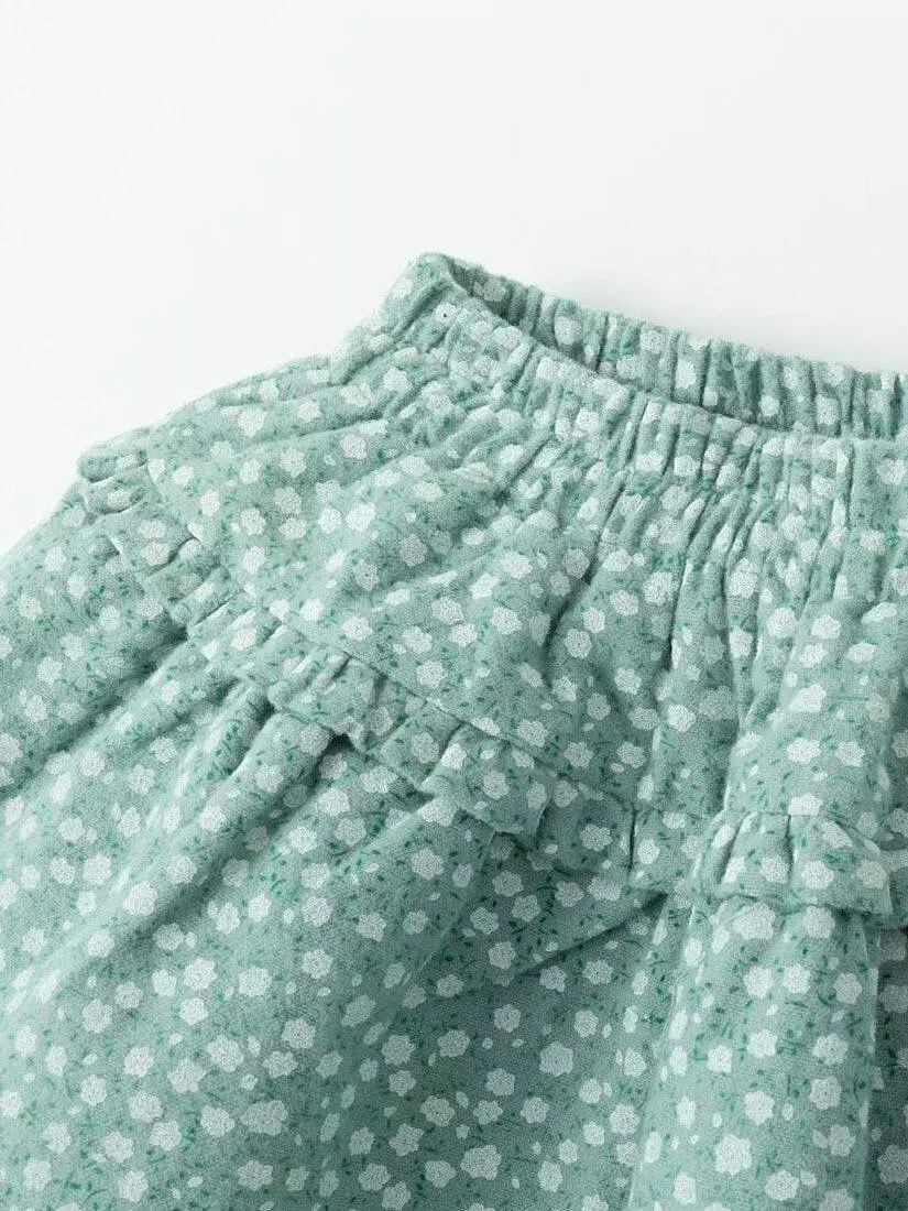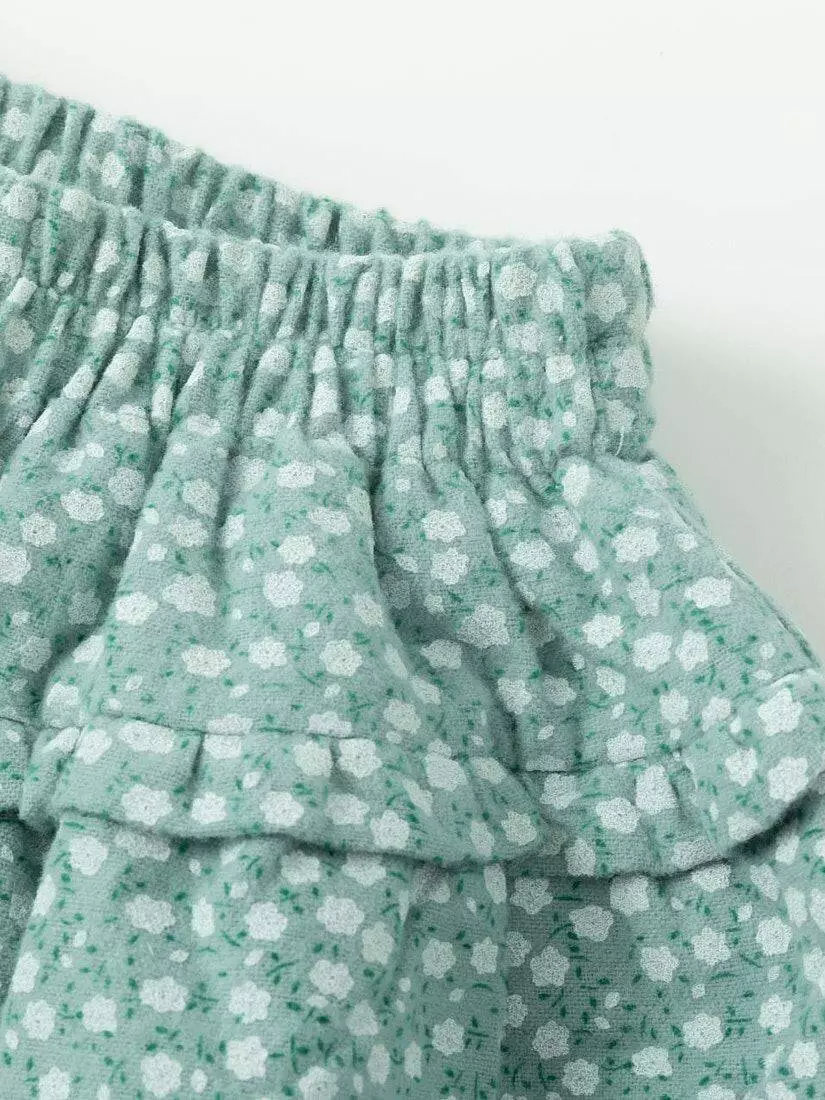 Зустрічайте нову колекцію - колаборація брендів YUMSTER і NEWNESS! Фланелева коротка спідниця з рюшами - це дивовижний предмет одягу, який дарує дівчаткам можливість висловити свій стиль та почуття моди. Вона стане яскравим акцентом у гардеробі і дозволить маленькій модниці почуватися особливою. Деталі моделі: спідниця світло-зеленого кольору. Пояс на резинці. Три яруси рюшів. Довжина – вище колін. Принт - дрібна квіточка. Є білий під'юбник. Розмірний ряд: на зріст від 98 см до 134 см