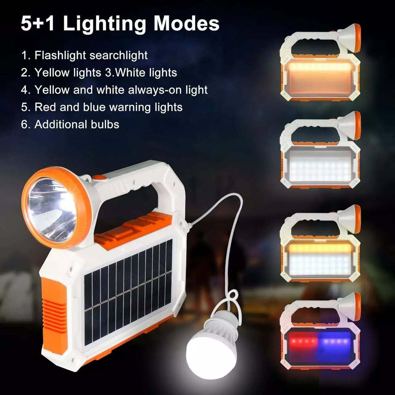 светодиодный индикатор зарядки; интеллектуальное управление освещением; таймер; функция оповещения о ЧС в доме – режим SOS: красный и синий цвет; встр