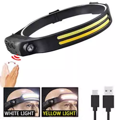 Фонарь налобный BL-W689-LM+2COB (white+yellow), Motion Sensor,