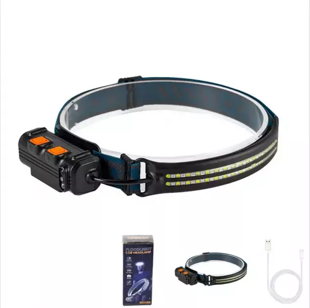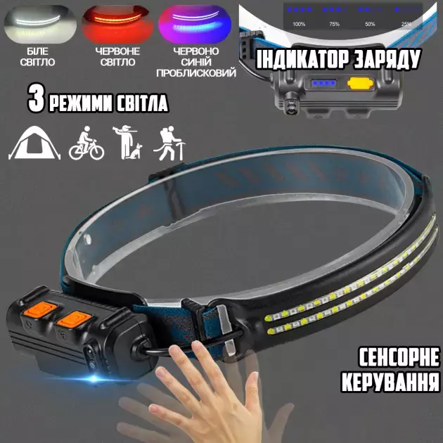 Фонарь налобный BL-W691-2COB (white+red+RGB), 8668, Motion Sensor,