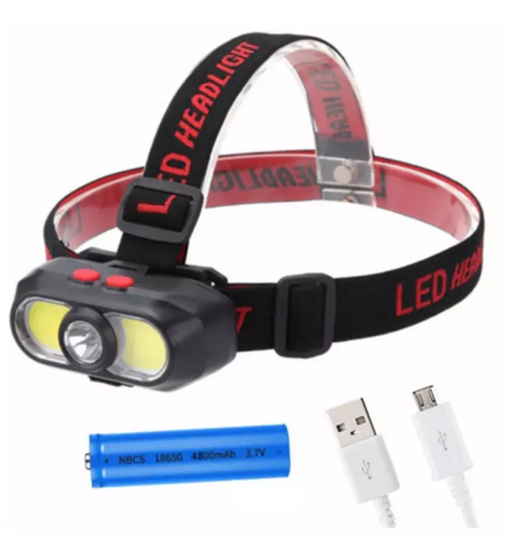 Фонарь налобный KX-302-LED+2COB, 1x18650, ЗУ Type-C, Box оптом