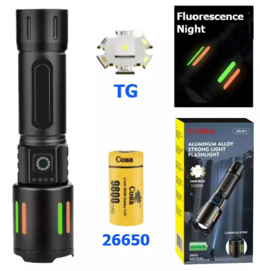 Фонарь ручной CB-611-TG, индикация заряда, 1x26650/3xAAA, ЗУ