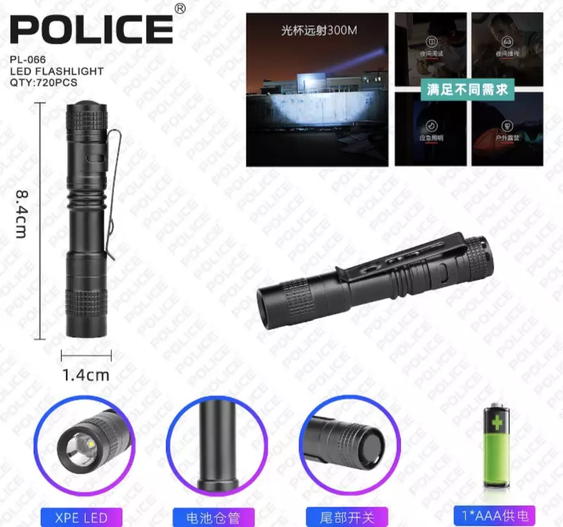 Если вы ищете надежный и функциональный фонарь для использования в повседневной жизни, то фонарь ручной Police PL-066 - идеальный выбор. Он имеет портативный мини-размер, форма ручки, длина всего 9 см.