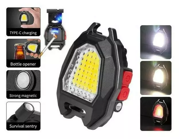 Фонарь тактический кемпинг RB441-COB(white+yellow+red) type-c,индикатор, магнит, зажигалка