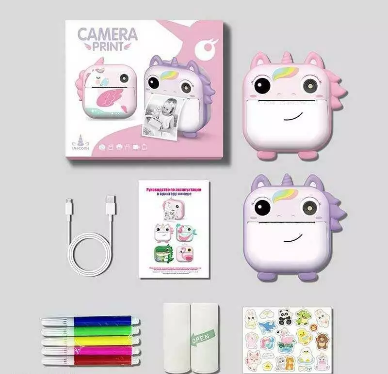 Фотоапарат-принтер M 5 D 1 Штрих=30526 (50) 2 кольори, фронтальна камера, дріт micro USB, роз’єм для SD карти, 2 рулони термопаперу, в коробці