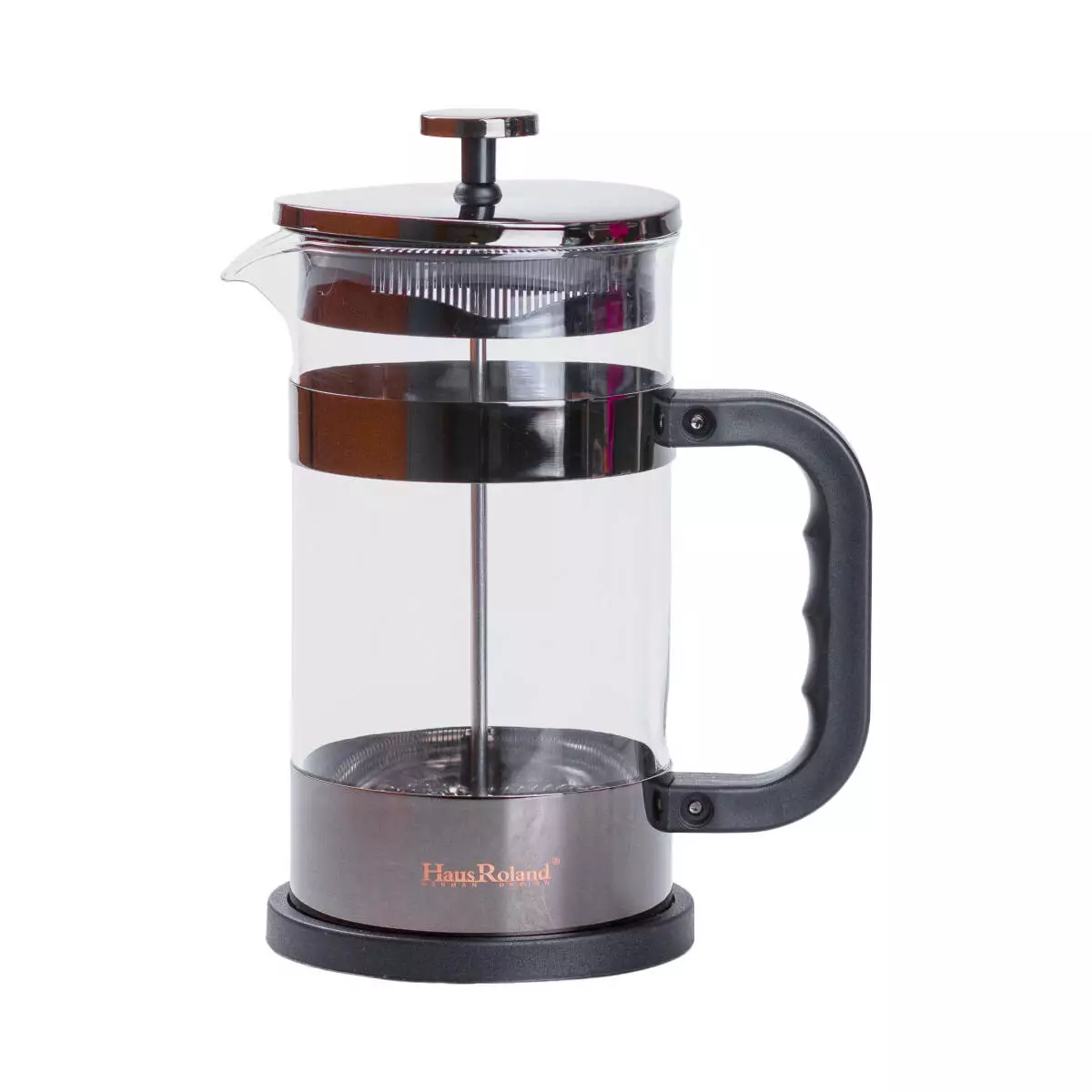 Цей елегантний френч-прес Haus Roland об'ємом 1 л вишукано доповнить вашу кухню. Колба з високоякісного скла стійка до перепадів температур і легко миється, а чорна окантовка надає елегантності. Фільтр з нержавіючої сталі щільно прилягає, забезпечуючи чисте заварювання кави або чаю.