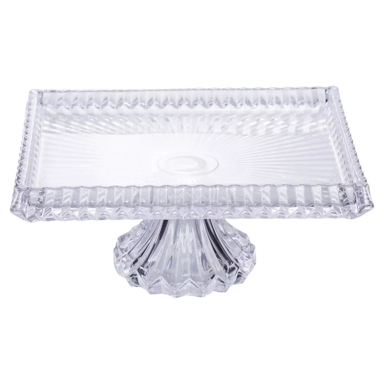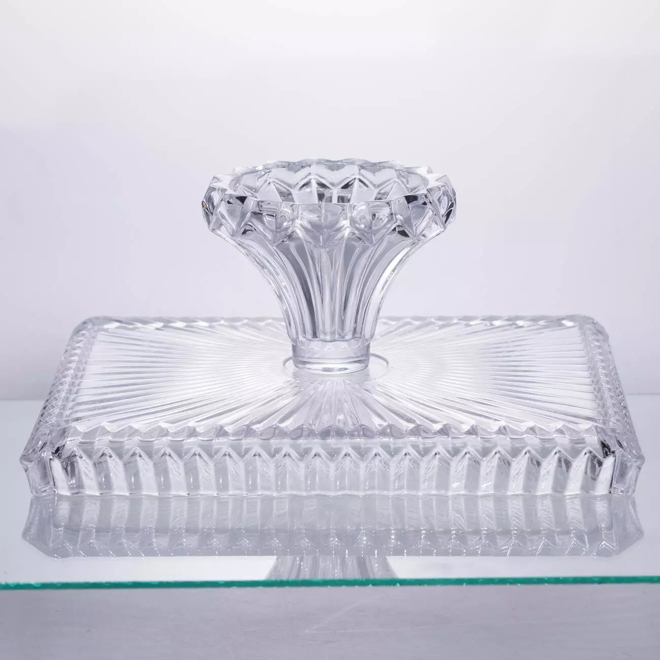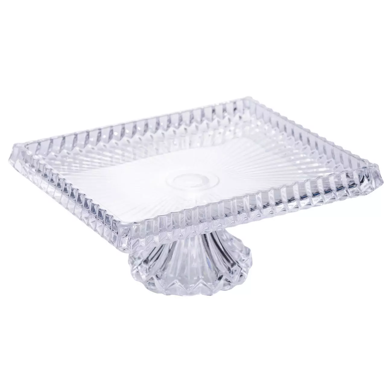 Фруктовниця на ніжці виготовлена з товстого прозорого скла, що забезпечує надійність і зручність у використанні. Прямокутна форма з розмірами 30*25*13