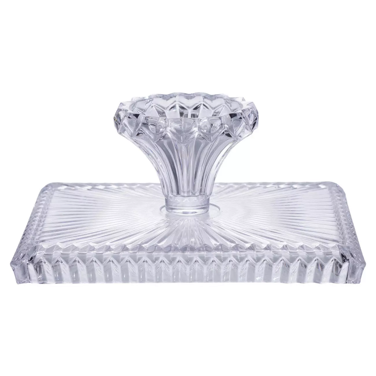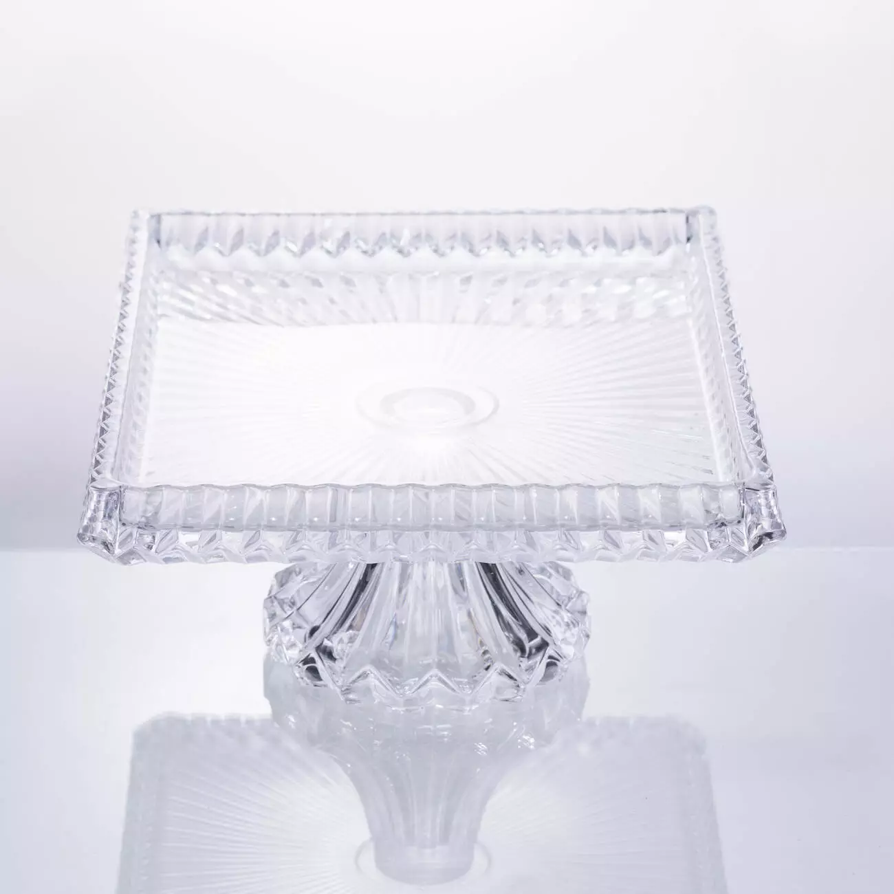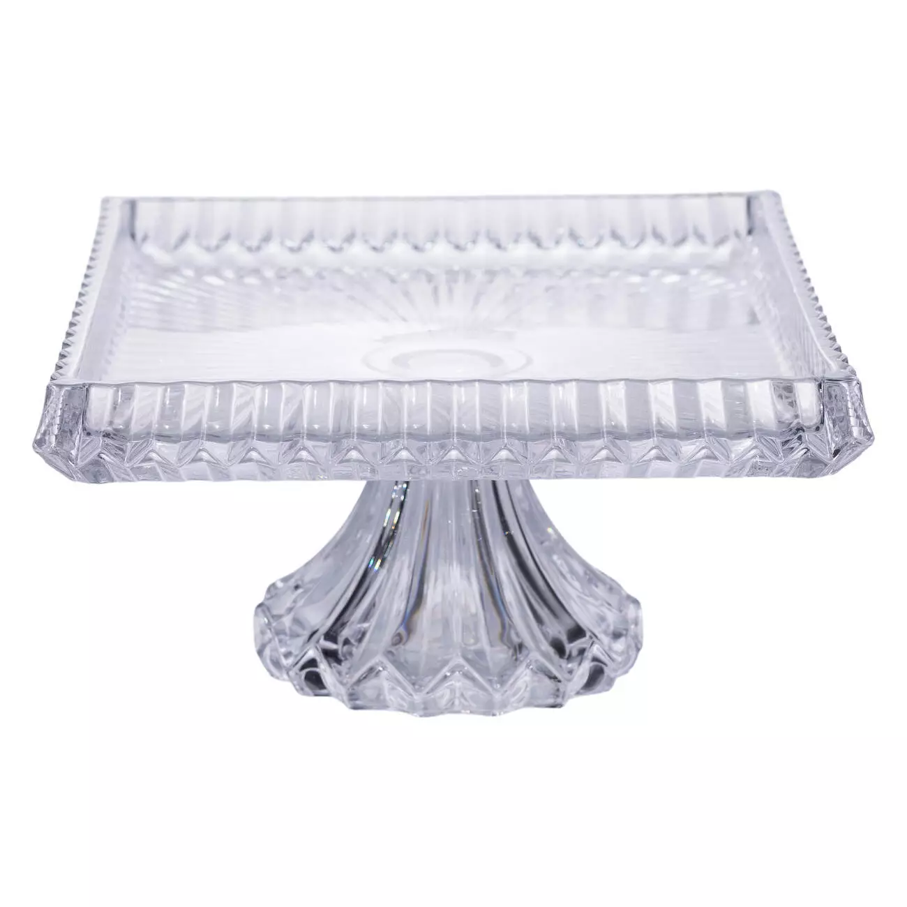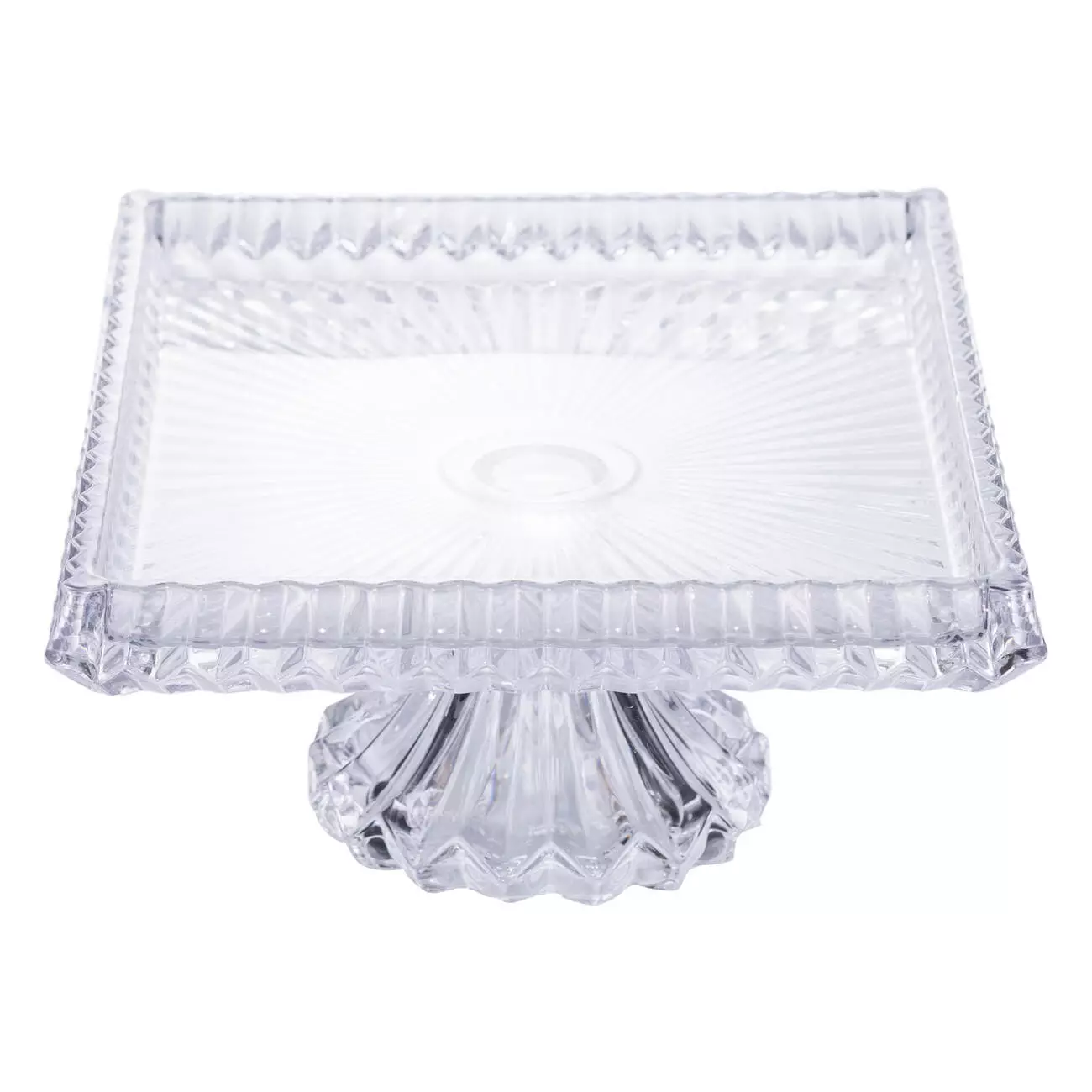 Фруктовниця на ніжці виготовлена з товстого прозорого скла, що забезпечує надійність і зручність у використанні. Прямокутна форма з розмірами 30*25*13