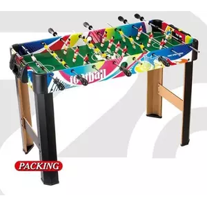 Дерев'яний футбол підлоговий 1084 виготовлений з екологічно чистого матеріалу, доповнений пластиковими та металевими елементами. Ігрове полотно є зменшеною копією реально існуючого футбольного поля, на якому відбуватимуться світові матчі. Матова темно-зелена основа розкреслена під лінію розлучення м'яча, штрафну зону та воротарську площу з пластиковими воротами, а також вбудованими фіксованими таблицями для зручного ведення рахунку. Правила гри дуже прості і нічим не відрізняються від звичайного футболу: необхідно забити якнайбільше голів у ворота суперника, але при цьому не забувати про захист свого боку. У футбольному матчі беруть участь дві сильні команди: червоні та жовті. У кожній команді 11 гравців (10 польових та 1 воротар). Керувати фігурками необхідно за допомогою спеціальних телескопічних рукояток, на яких розміщено певну кількість гравців. Осі напрямних виконані з металу, а знімні ручки-тримачі із пластику з антиковзним рельєфом. Крім того, стіл оснащений рахунковим табло, де Ви зможете з легкістю фіксувати результат, не відволікаючись від ігрового процесу. Особливості моделі: - каркас із високоякісного ДСП; - металеві штанги; - рахункове табло та 2 м'ячі. Комплектація: - Каркасні елементи; - ігрове поле; - 8 металевих штанг; - елементи кріплення з фігурками гравців; - 2 пластикові м'ячі; - 2 циферблати; - Пластикові ручки з антиковзким покриттям.