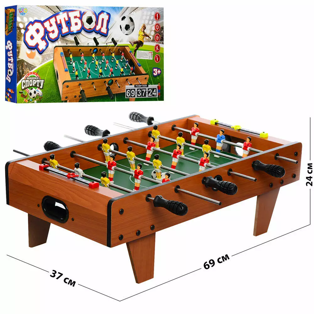 Фотография 1 товарной позиции интернет-магазина детских игрушек www.smarttoys.com.ua Футбол 2035N на штангах, дерев'яний, шкала ведення рахунку, м'яч 2шт., кор., 69-35-8 см.