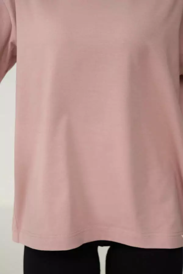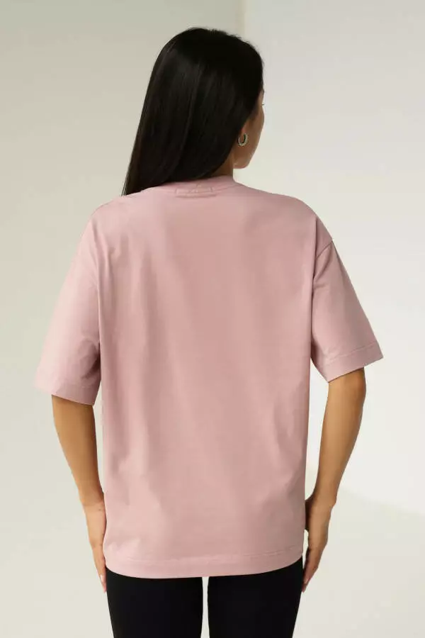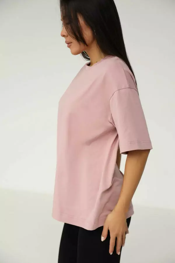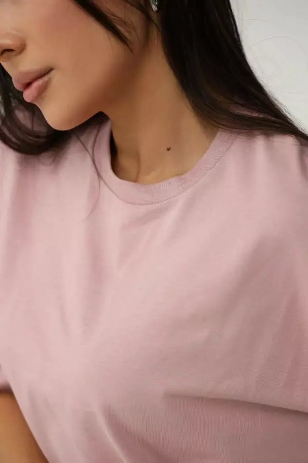 Ніжний рожевий колір додає футболці витонченості й підкреслює жіночність. Цей відтінок легко поєднується з іншими кольорами, що дозволяє створювати як романтичні, так і нейтральні образи, залежно від настрою. Рожевий колір завжди асоціюється з ніжністю та легкістю, тому він додає образу свіжості та природного шарму, роблячи вас більш яскравою та водночас витонченою.