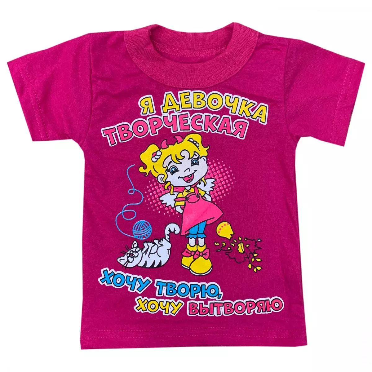 Детская яркая футболка с принтом Я-девочка творческая для девочки кулир