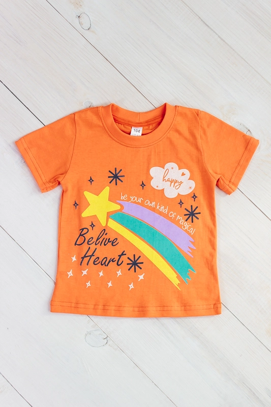 Футболка - найпопулярніша річ в дитячому гардеробі: в ній зручно ходити як вдома, так і на вулиці. Дана модель виконана з однотонного куліру, який вважається самим тонким трикотажним полотном з бавовни. Одяг з нього виходить легкий і повітряний. На лицьовій частині футболок зображені найпопулярніші мультяшні герої, з таким принтом дитина буде стильною і виділиться серед однолітків. Відмінно підійде під джинси, спідницю або шорти.