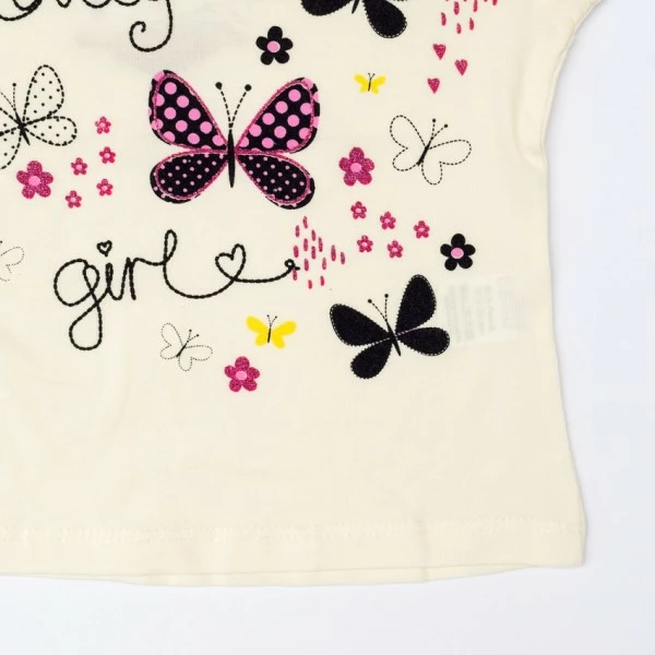 Материал футболки - натуральный трикотаж, хорошо пропускает воздух и переносит частую стирку. Базовая футболка со стильным принтом отлично послужит в прохладное время года и как самостоятельный предмет одежды летом. Хорошо сочетается с леггинсами, джинсами и шортами, ее удобно надевать под теплые вещи зимой.
