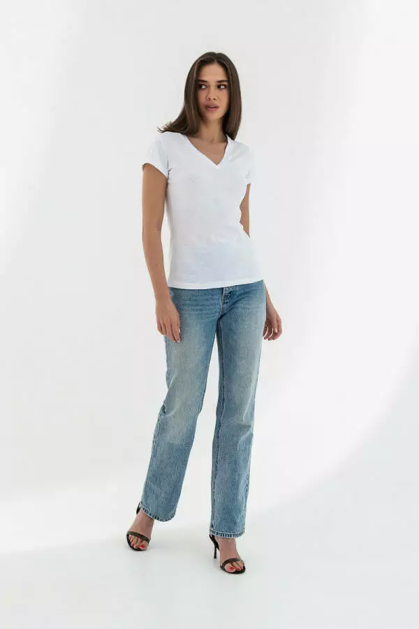 Футболка жіноча бавовняна з V-вирізом German Volf Білий XS(48) 22015