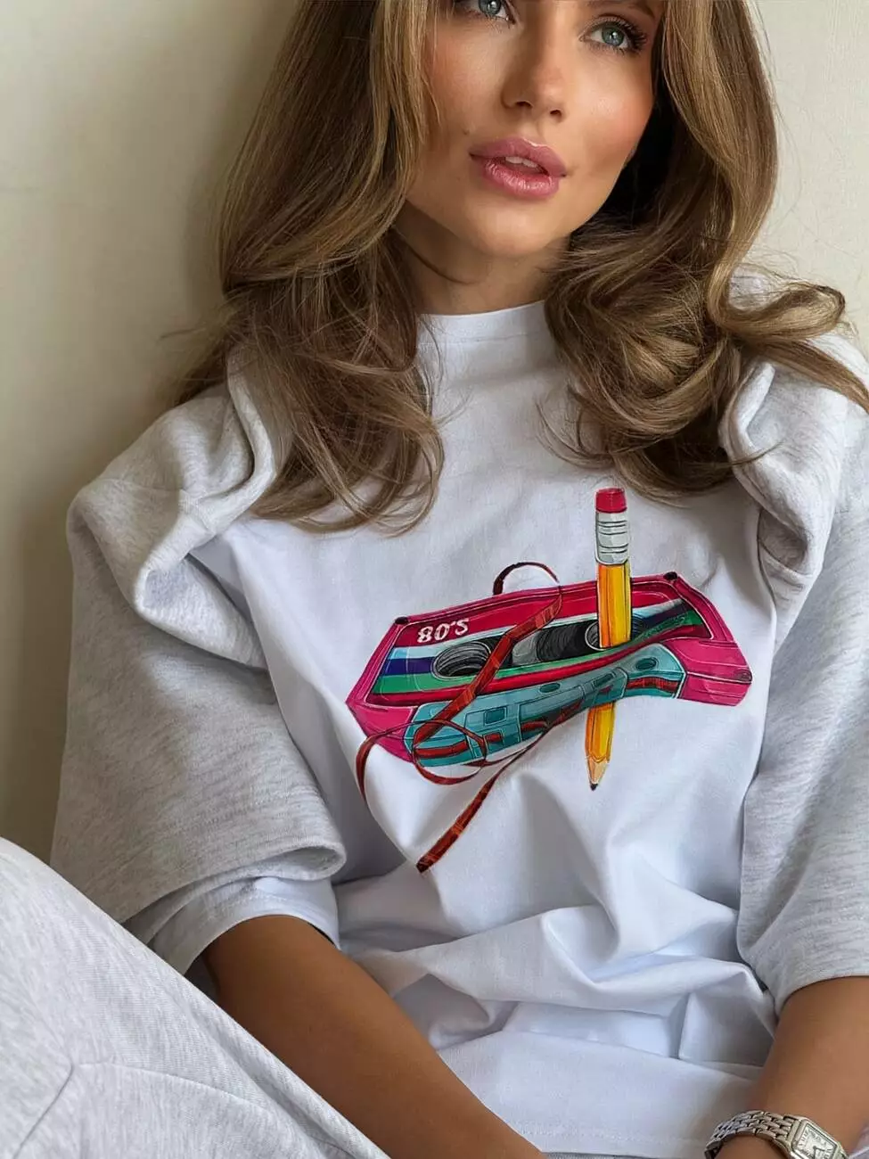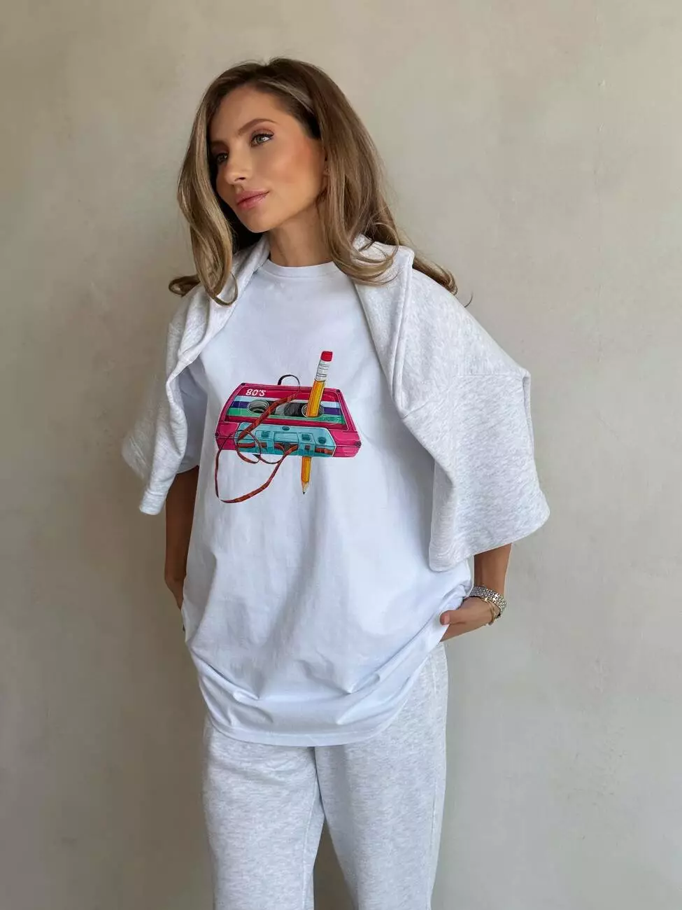 Широка футболка формат “over size” зі стильним принтом у вигляді касети.