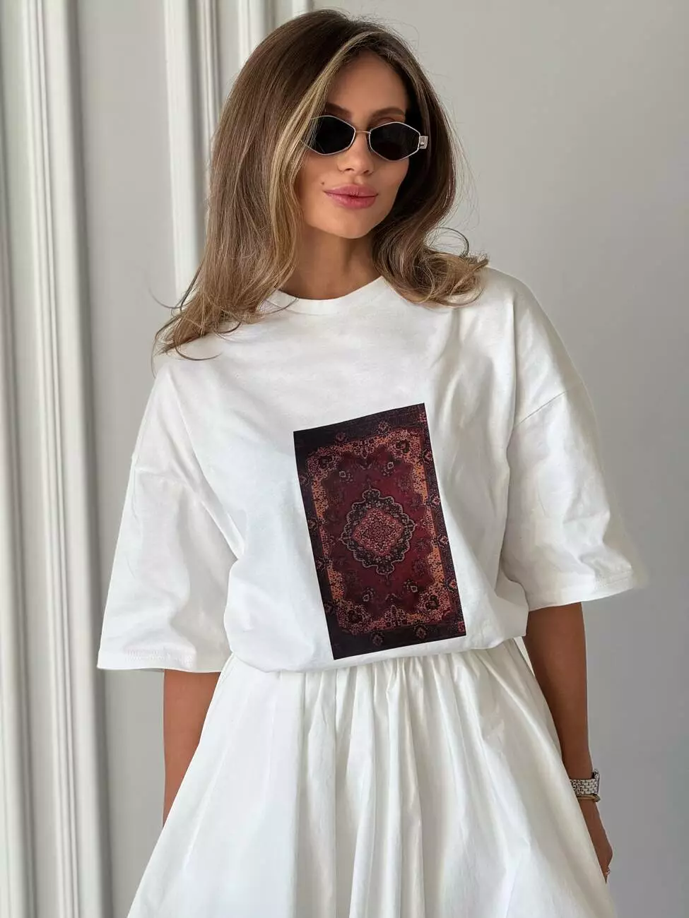 Широка футболка формат “over size” зі стильним принтом у вигляді килима.
