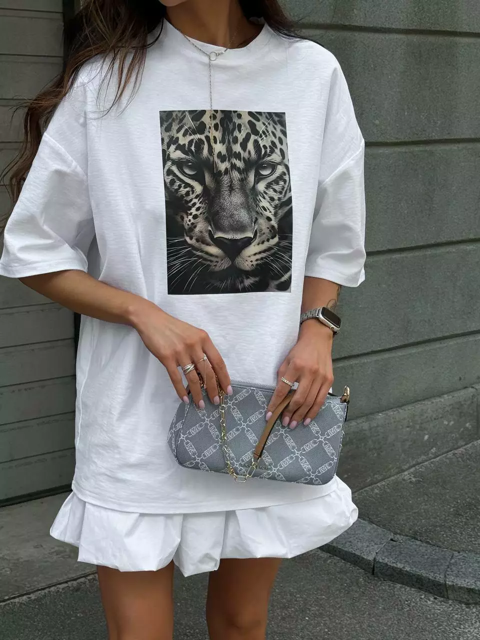 Широка футболка формат “over size” зі стильним анімалістичним принтом. Тканина : 100% бавовна ( щільність 250)