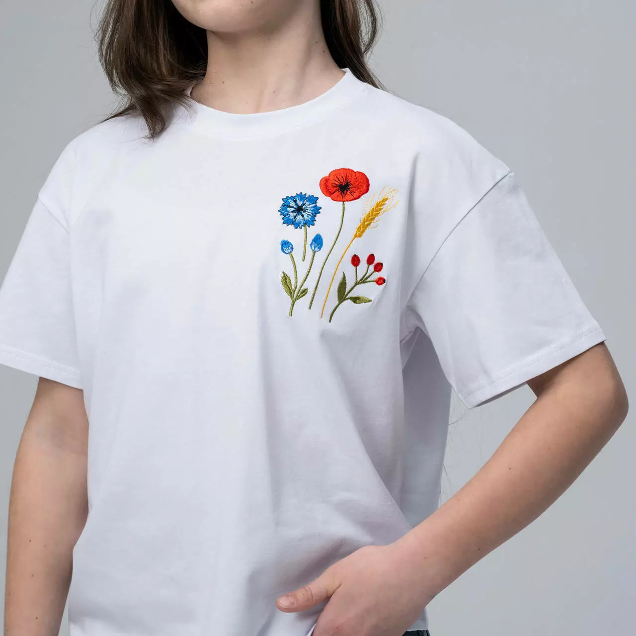 Ця футболка — не просто одяг, а маленьке квітуче поле для щасливого