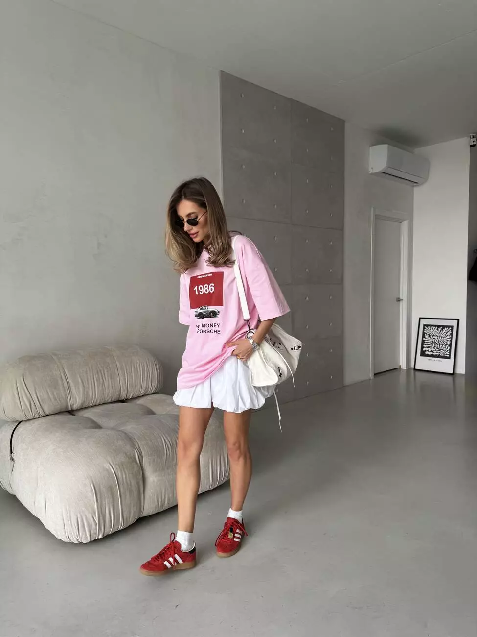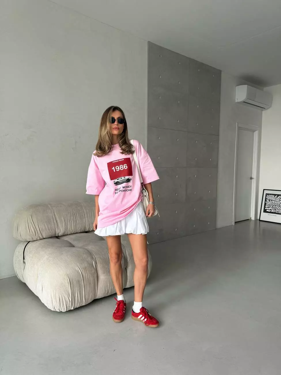 Широка футболка формат “over size” зі стильним принтом у вигляді порше.