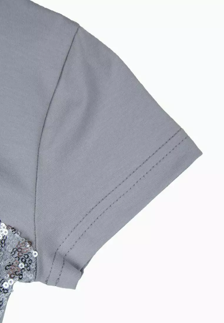 Деталі моделі: Футболка сірого кольору.