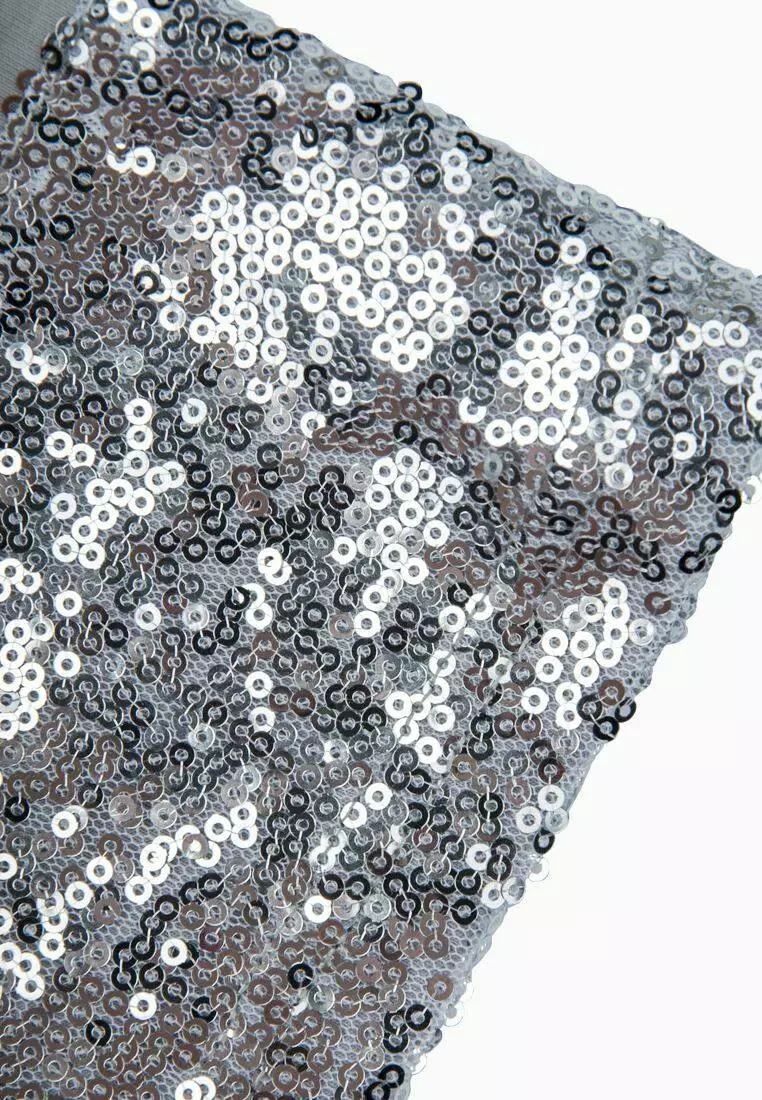 Прилягаючого силуету, з декоративною обробкою з паєтками. Кругла