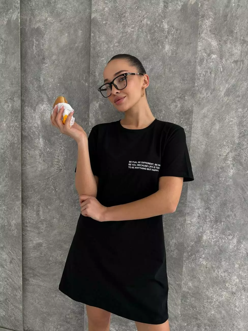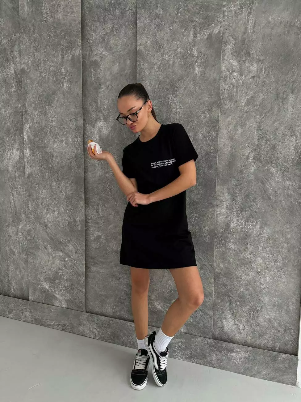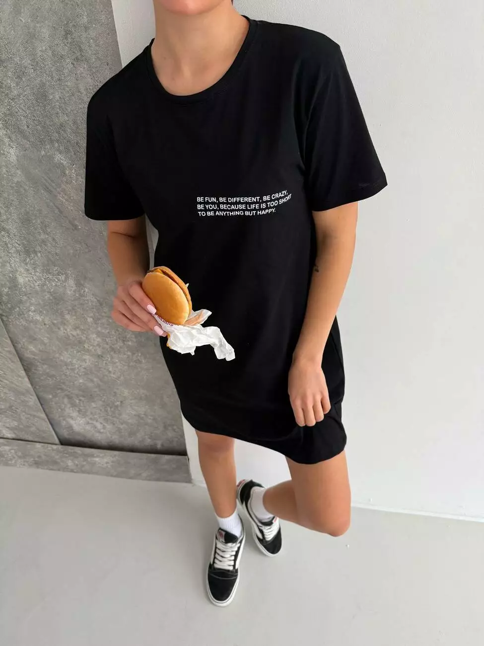 М'яка, затишна та неймовірно комфортна футболка-туніка Be Happy в класичному чорному кольорі – ідеальний вибір для тих, хто цінує елегантність і стиль. Виконана з якісного трикотажу, вона приємно прилягає до тіла, даруючи відчуття свободи та комфорту.