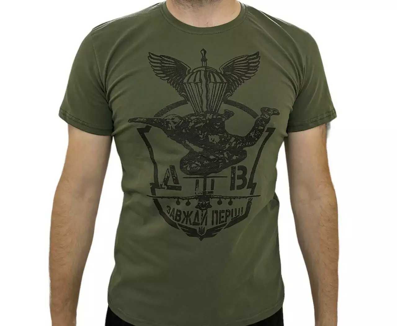 Футболка з принтом бавовняна олива (продаж ростовкою)