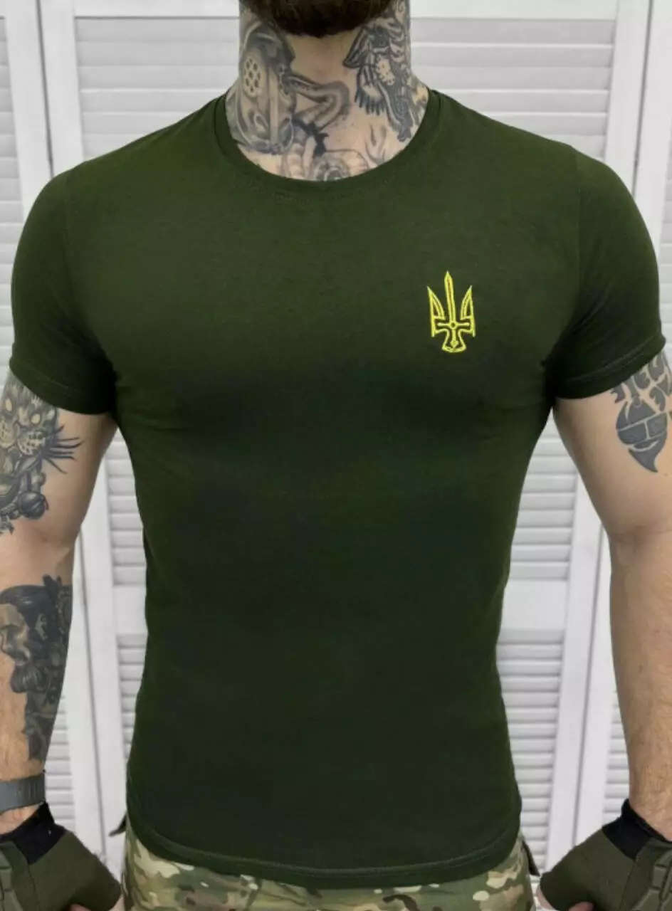 Футболка з вишивкою бавовняна олива (продаж ростовкою)