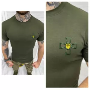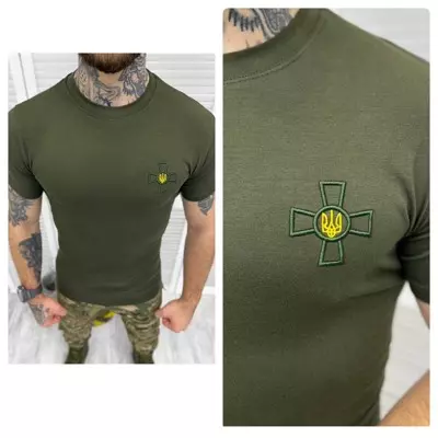 Футболка з вишивкою бавовняна олива (продаж ростовкою)