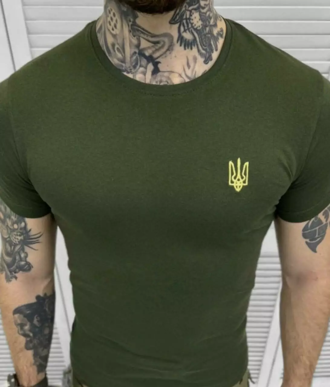 Футболка з вишивкою бавовняна олива (продаж ростовкою)