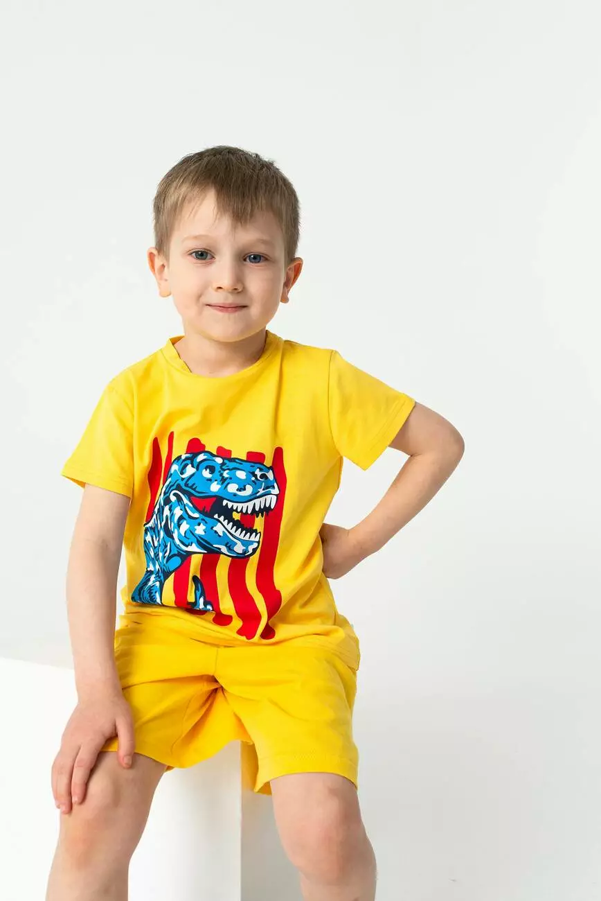 Кругла горловина. Короткий рукав. На грудях принт Динозавр. Фасон