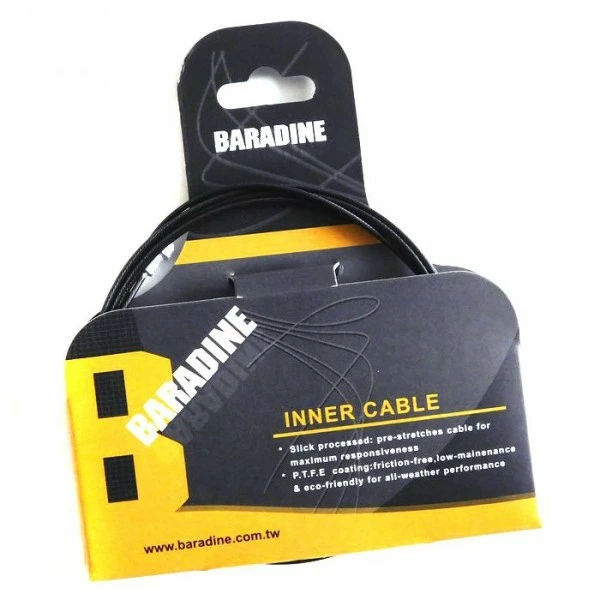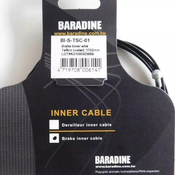 Тефлоновий гальмівний трос шосе Baradine підходить до гальмівних ручок шосе або дуалам. Якість – відмінна. Довжина становить 1,7 м.