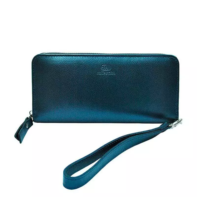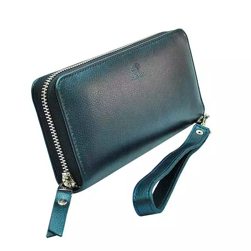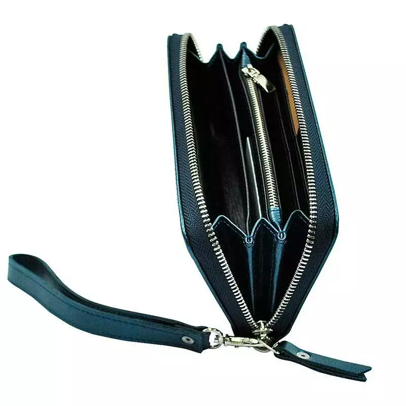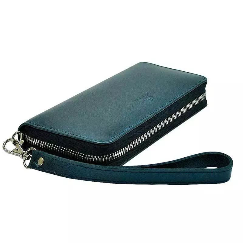 Шкіряний жіночий гаманець на блискавці синій з