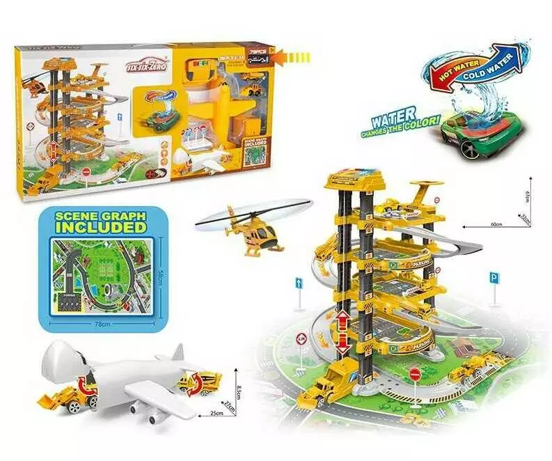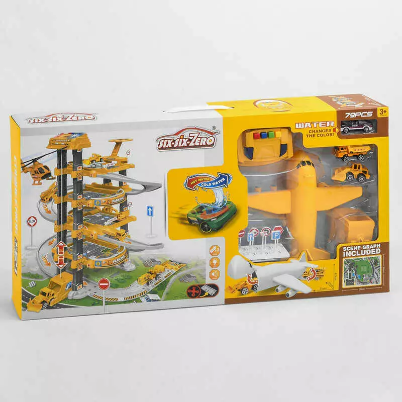 Трек 660 А-302 (10/2) 5 поверхів, 2 машинки, 1 машинка змінює колір, літак, автоматичний підіймач, світло, звук, аксесуари, в коробці