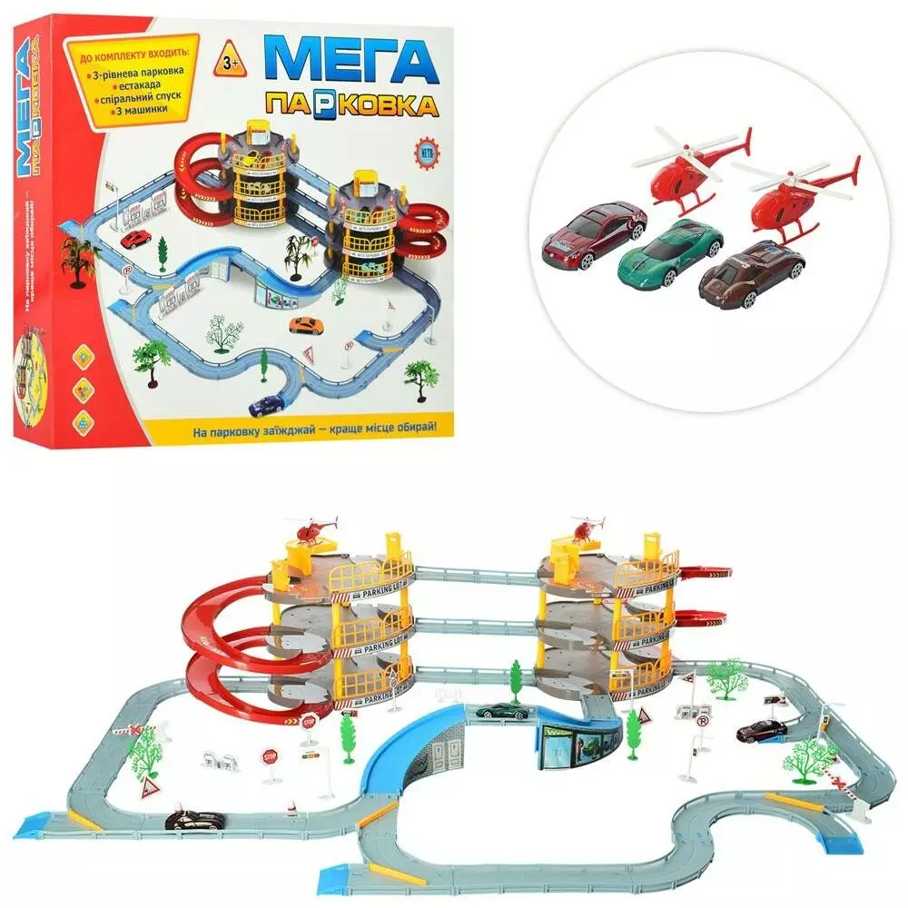 Фотография 1 товарной позиции интернет-магазина детских игрушек www.smarttoys.com.ua Гараж 922-12 3 пов., машинка 3 шт., гелікоптер, 2 шт., дор.знаки, дерева, кор., 47,5-41-8,5 см.