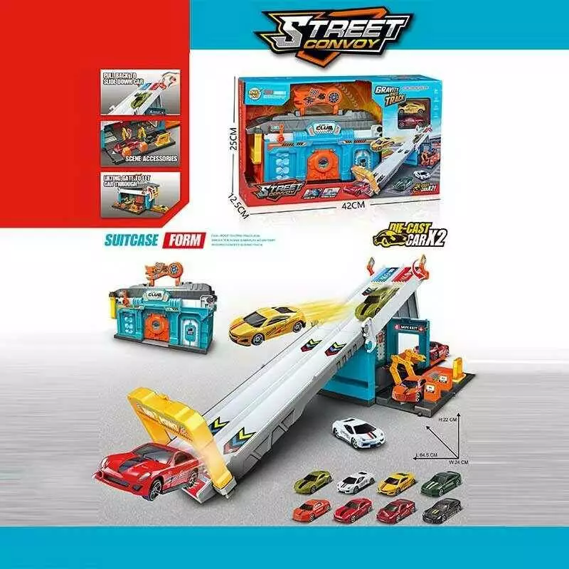 Гараж з треком MH 194 (18) валіза трансформується, рухомі деталі, 2 металопластикові машинки, в коробці