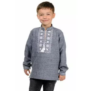 Головною окрасою й одночасно чарівною відмінністю сорочки є вишиті геометричні орнаменти. Білий візерунок довершує елегантний образ і робить виріб ще більш оригінальним. Крій сорочки вільний, рукави на манжетах і застібаються на ґудзики.