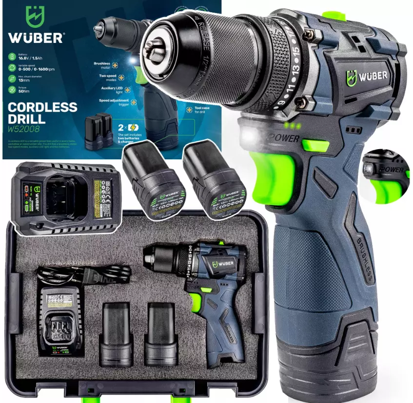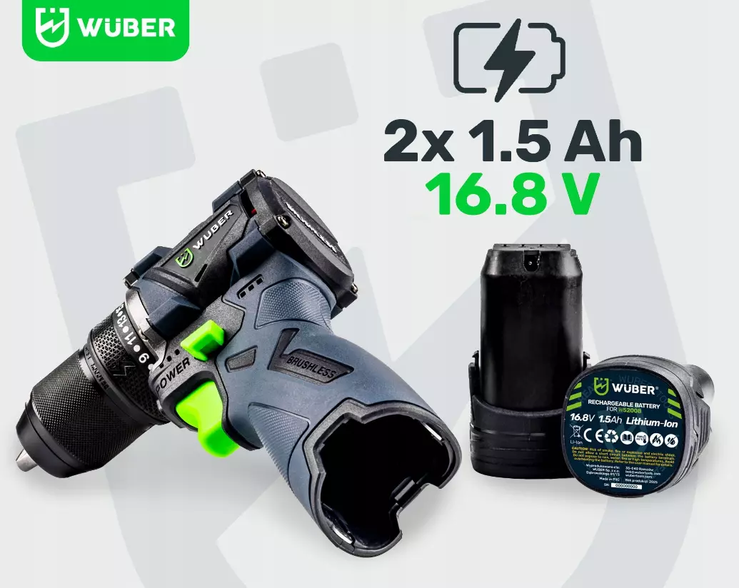 Дрель-шуруповерт питается от перезаряжаемого литий-ионного аккумулятора напряжением 16,8 В и емкостью 1500 мАч, что обеспечивает высокую производительность как машины, так и самого аккумулятора.