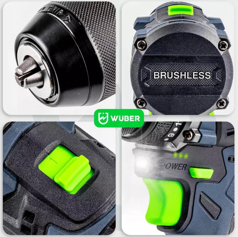 ⭐ Встроенный светодиод, расположенный под шпинделем, эффективно освещает рабочую зону, что облегчает точное сверление и закручивание шурупов даже в плохо освещенных или труднодоступных местах.