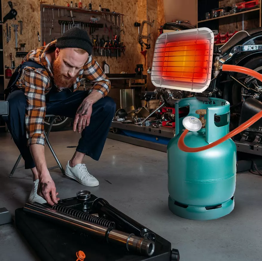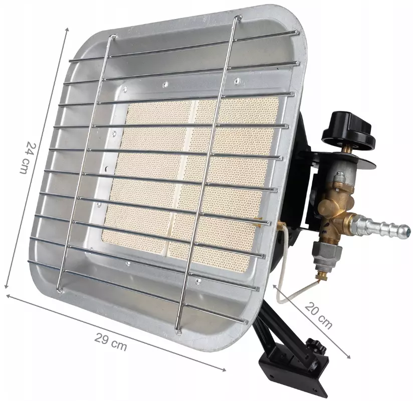 Для получения тепла в газовом обогревателе используется керамическая горелка, в зависимости от температуры в помещении мы можем регулировать поверхность нагрева, чтобы обогреть помещение как можно более оптимально.