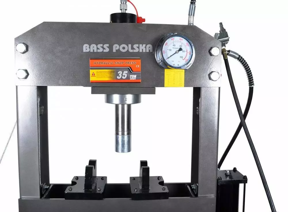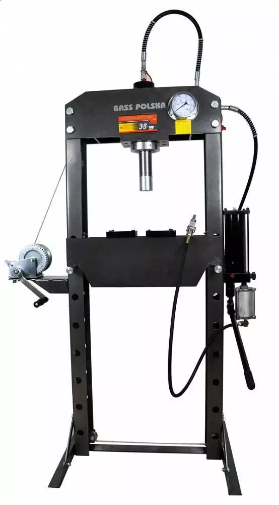 Универсальный пневматический гидравлический пресс от производителя BassPolska может быть использован в различных отраслях промышленности (сервисные мастерские, ремонтные мастерские, в сельском хозяйстве и т.д.). Автономность, усилие в 35 тон, простая и надежная конструкция из высококачественной стали гарантируют надежную работу и длительный срок эксплуатации, а также безопасность при работе с прессом. Преимуществом является гидравлический привод, который обеспечивает высокую мощность, плавный ход и точный контроль.