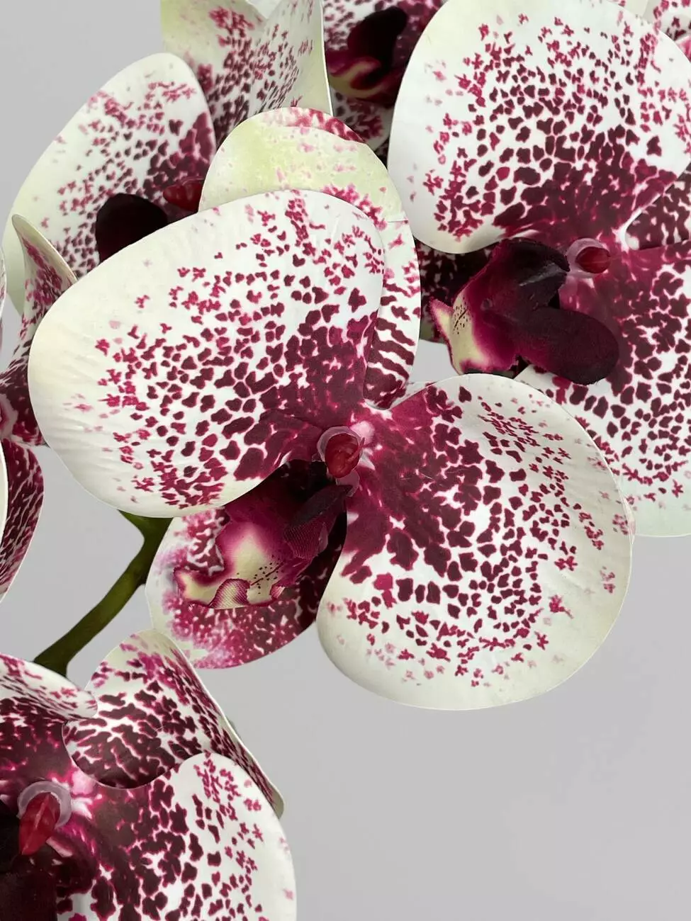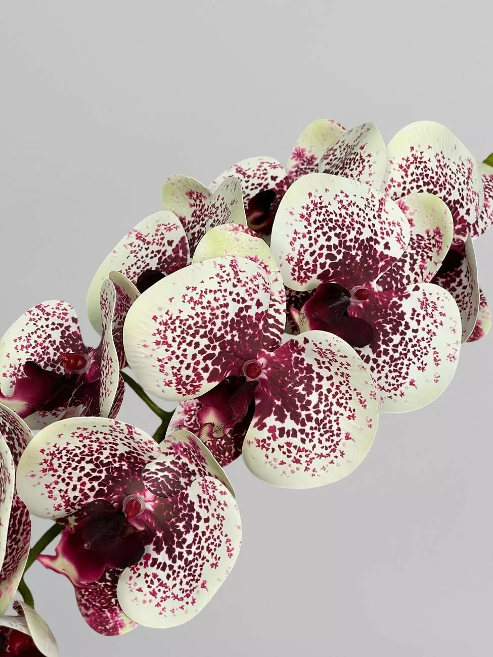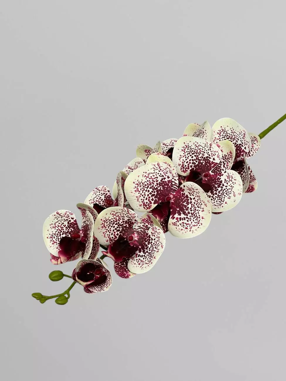 Гілка орхідеї штучна на 9 суцвіть, кремовий в бордову крапку, 95 см