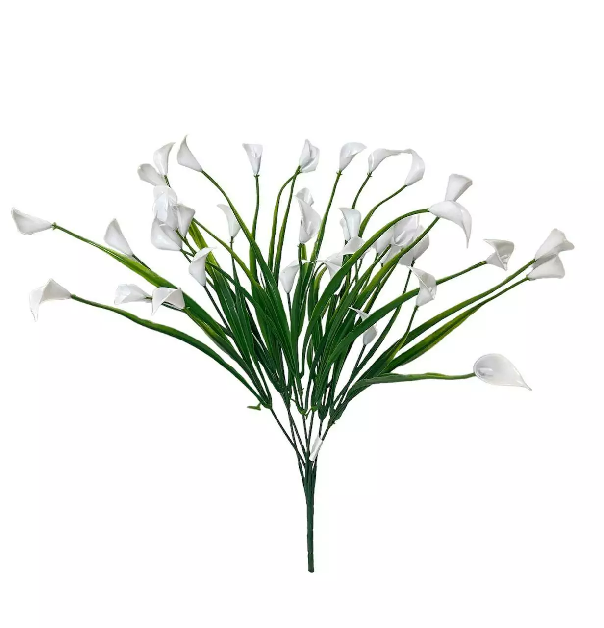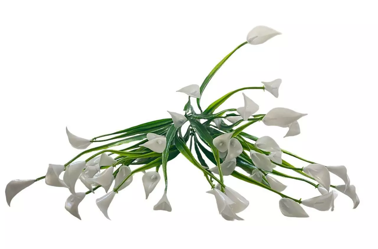 Штучна гілка-кущ кали білої з пластмаси висотой 37см. В прозорій фабричній упаковці зібрано по 2 шт.