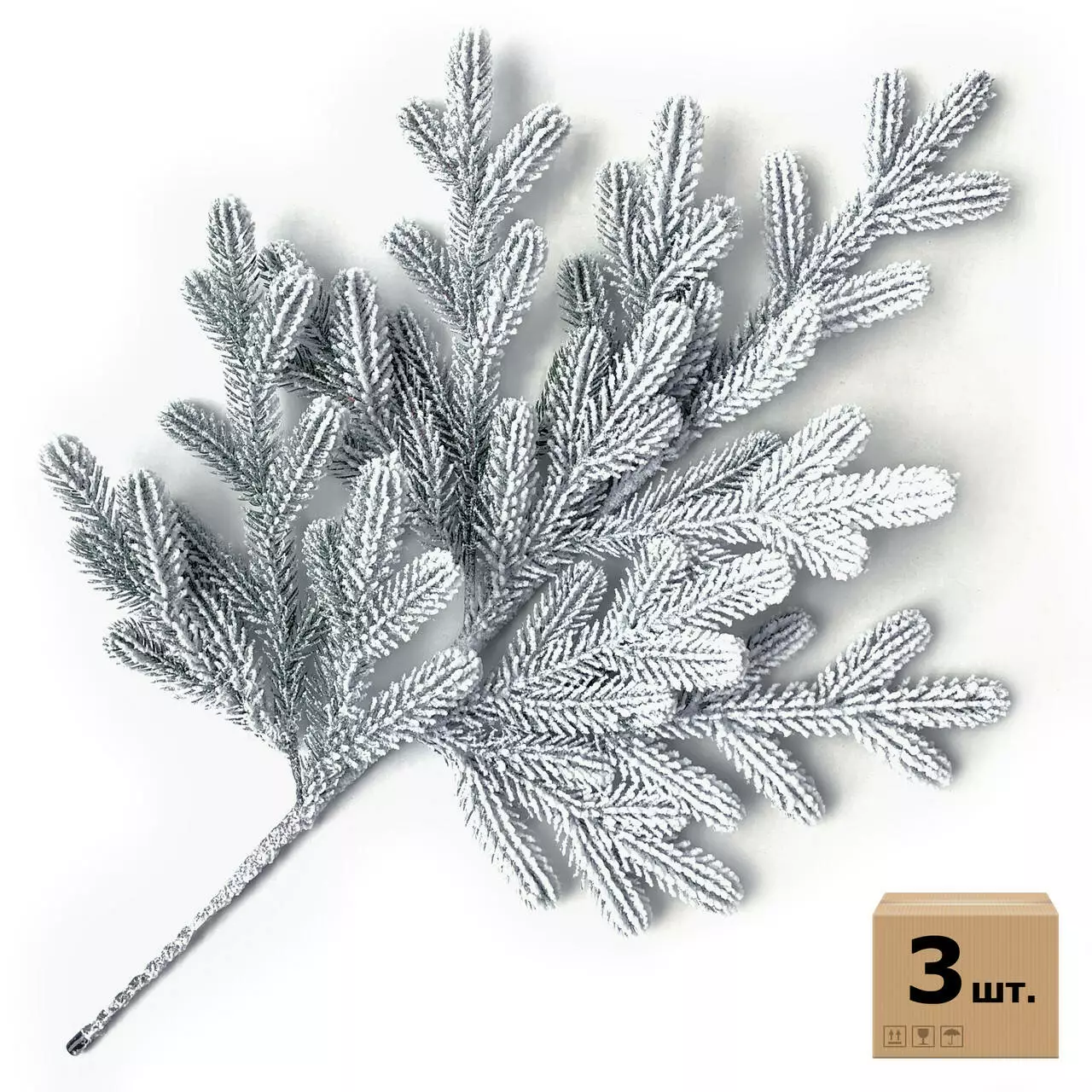 Гілки хвойні штучні Traditional 60 см засніжені (упаковка 3 штуки)