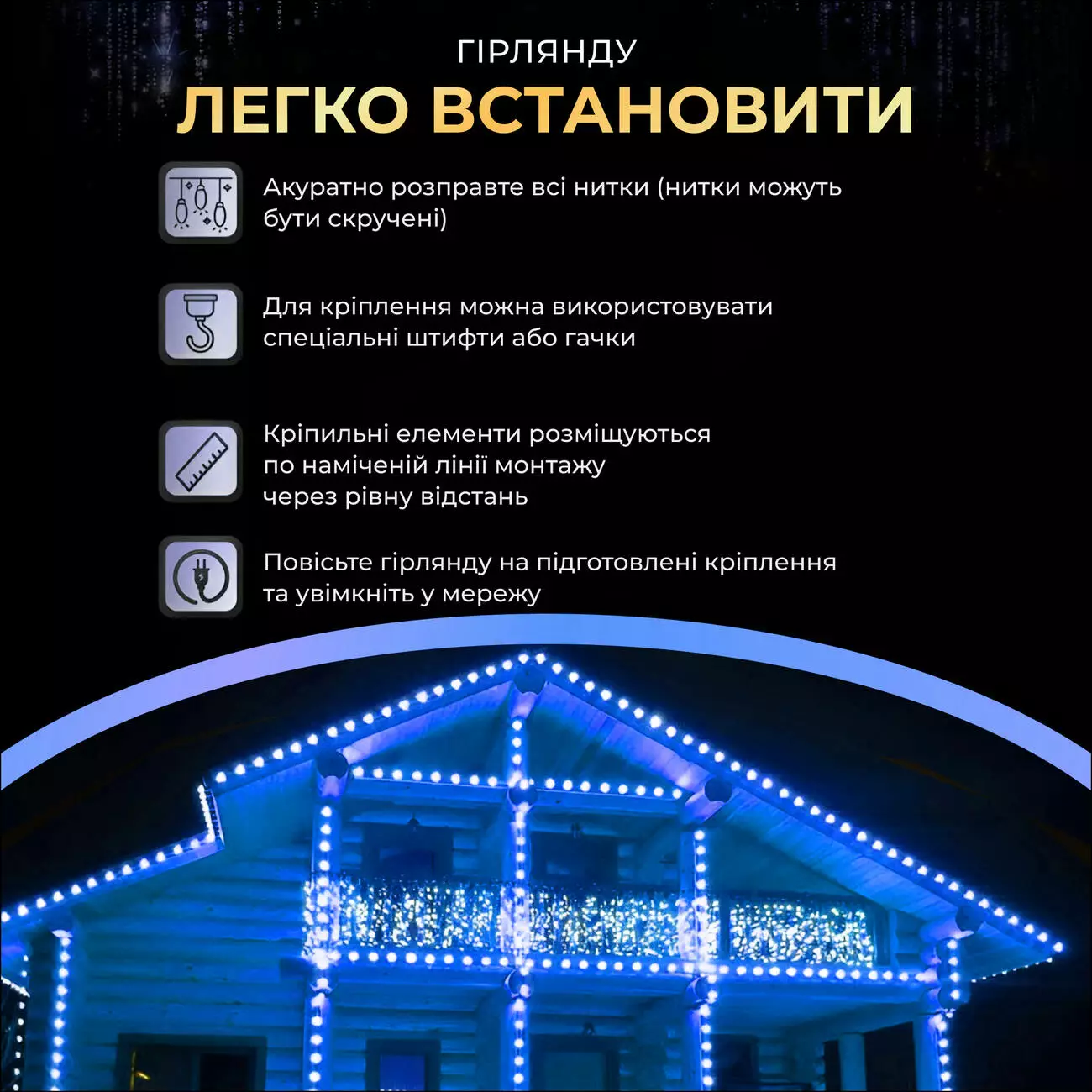 • Відстань між лампочками: 8 см