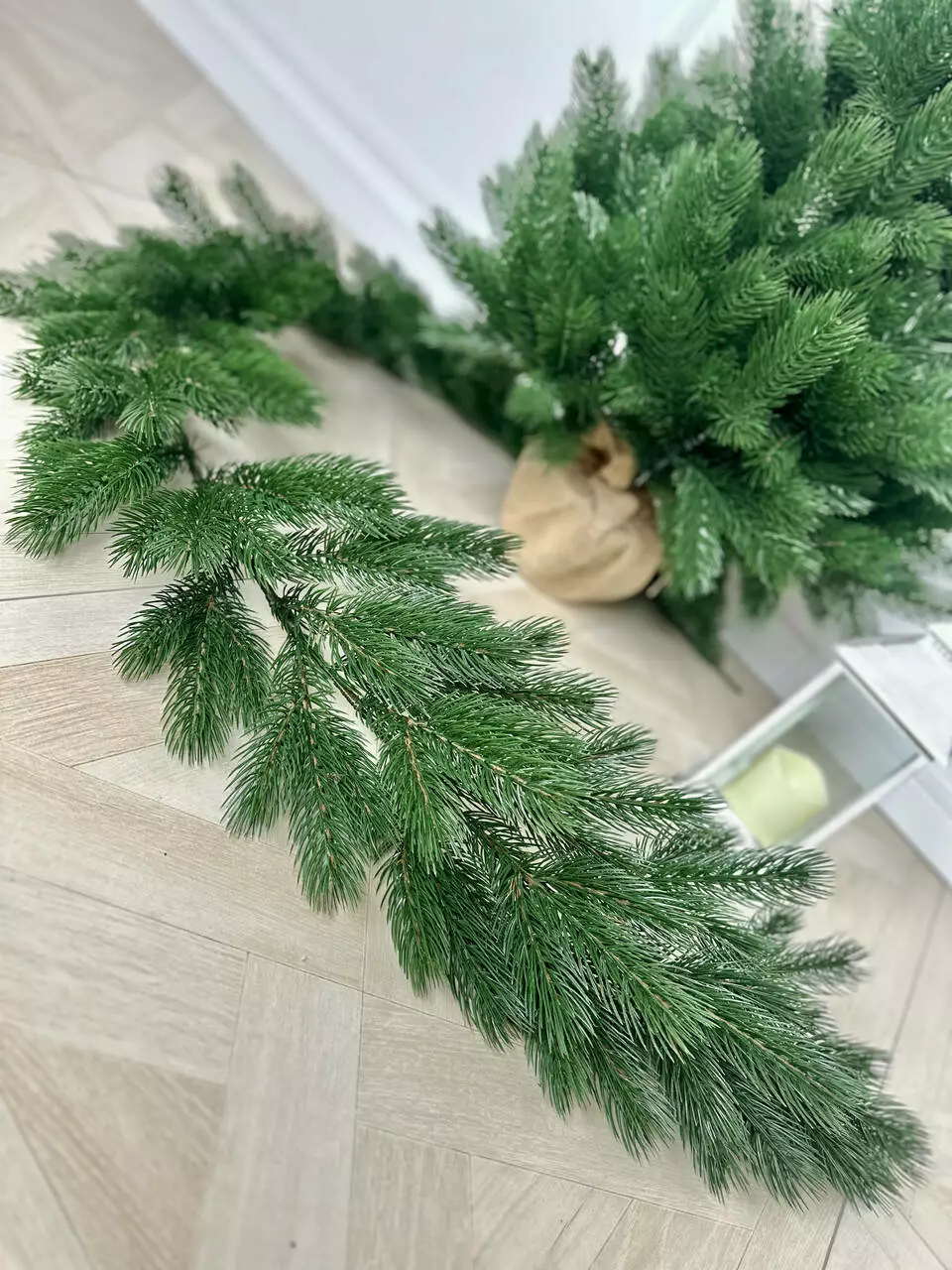 Гирлянда легко принимает нужную форму и сохраняет аккуратный внешний вид на протяжении всего сезона. Она не осыпается, не имеет запаха и не требует специального ухода. Гибкая основа позволяет без усилий разместить её на каминах, лестницах, полках, витринах или в фотозонах. Классический зелёный цвет гармонично сочетается с любыми новогодними украшениями — игрушками, лентами, шишками или световыми гирляндами.