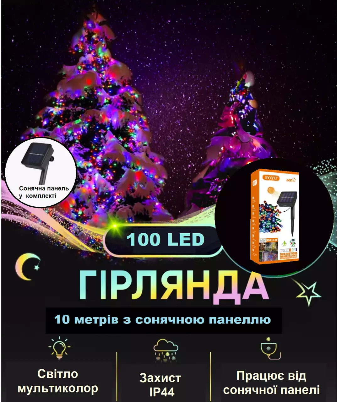 праздничных мероприятий. Гирлянда состоит из 100 светодиодов,