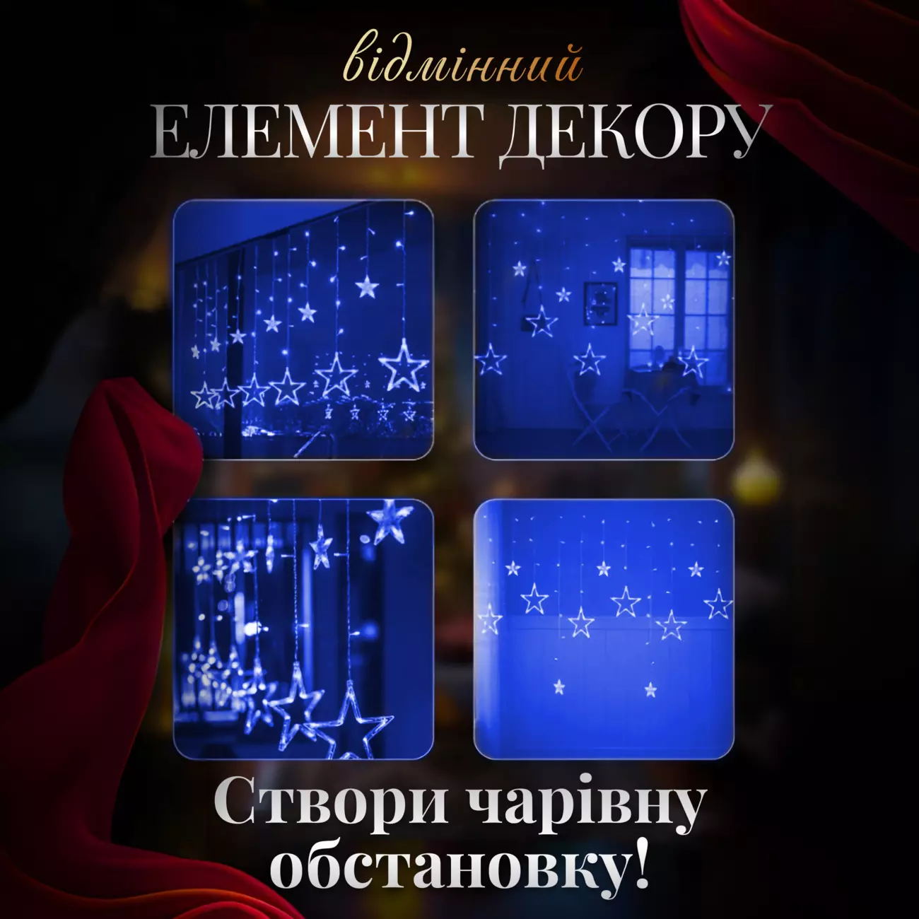 Дванадцять мерехтливих фігур зірок гірлянди "Зірки" створюють