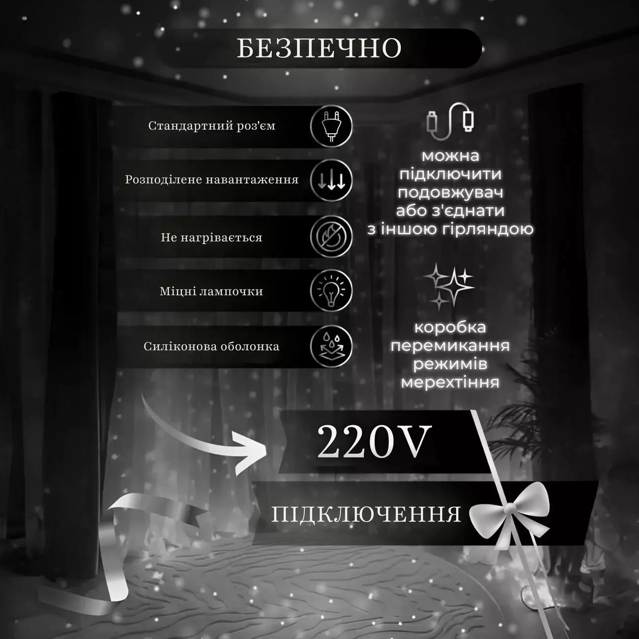 Переваги гірлянди Водоспад: